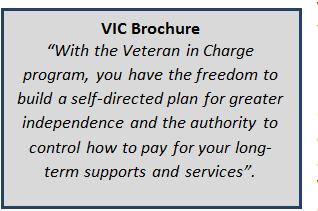 The IC’s experience in disability and independent living services, self-advocacy and consumer direction positions them to operate a successful VD‑HCBS program. The IC uniquely branded the program using language familiar to those who have served in the military—Veteran In Charge (VIC). As of October 2017, 71 veteran consumers, with ages ranging from 28 to 96 years old, were enrolled.